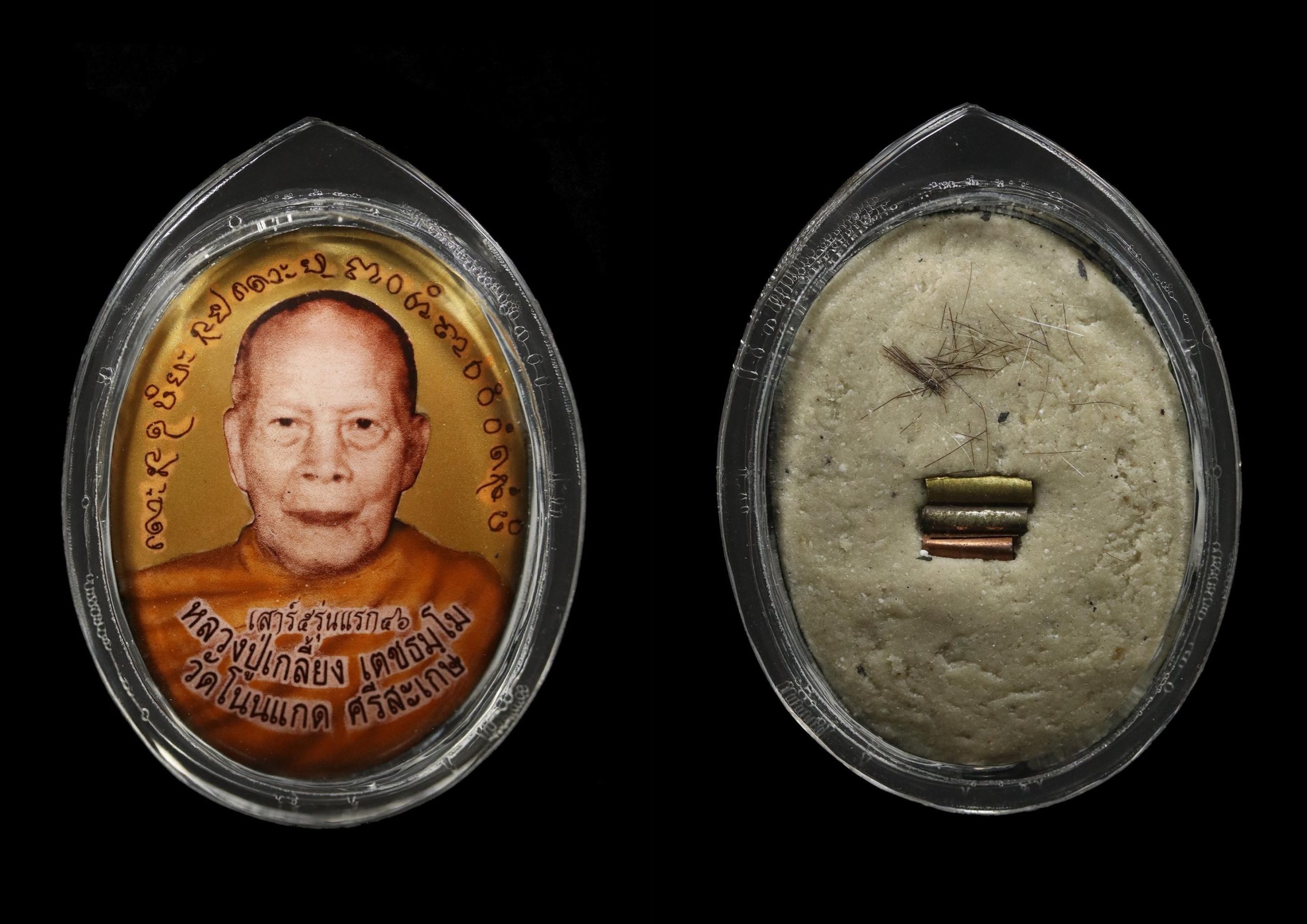 First Batch Locket Phim Jumbo Luang Phor Kliang TechaThamMo Wat Non Kead BE2546. Made 16 pieces only. This batch of amulet made to celebrate Luang Phor Kliang’s 96 years old birthday. The back of Locket inserted with takruts and LP’s hair.