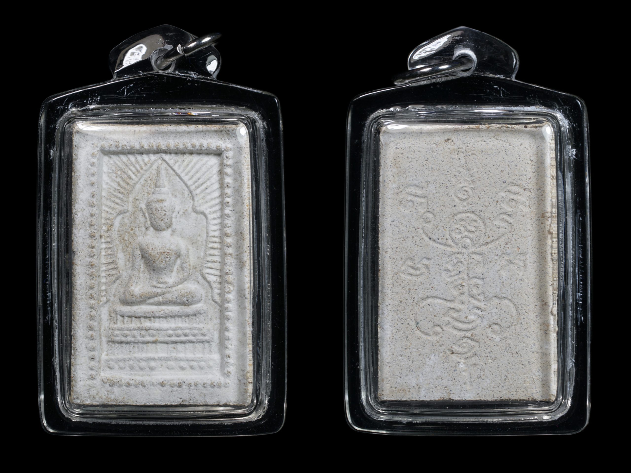 窗帘模崇迪佛背面Tukata经文,瓦萨栏雅佛寺,佛历2543(2000年)。这尊崇迪佛由阿赞Tua制作并交给龙婆满师傅加持。佛牌的材料包括由阿赞Tua收集的来自350位高僧的经粉。